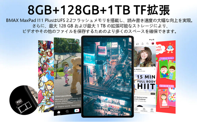 大容量メモリ(8GB+128GB+1TB拡張可能)