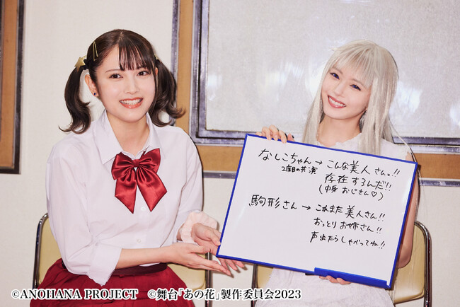 私は初演からの続投になります。初演ではプレッシャーも多かったですが、「あなるがあなるだった」と観た方に喜んでいただき、とてもうれしかったので、今回も前回以上のあなるをお見せできたらいいなと思っています。1日1日大切にして、最高の安城鳴子をお見せできるよう頑張ります。みおりん(市川)は可愛くてフレンドリーで、超いい子。めんまはみおりんにしかできないと思います。今はプライベートでも遊ぶくらい仲良しです。そして、今回、初めましての駒形さんとは趣味の話ですでに盛り上がっているので、これからのお稽古が楽しみです!