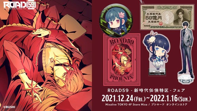 2022年1月16日(日)まで池袋にある「ストアミクサ」とブシロード公式通販サイト「ブシロード オンラインストア」にて舞台第1弾の上演1周年を記念した、『ROAD59 -新時代任侠特区-』フェアが開催中です。