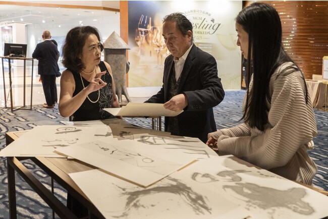 2023年6月2日、MGMシアター(於マカオ)で行ったグローバルプレミアでは、上映会場のホワイエにて、『SHIP』登場作品のアーティストによるアートエキスポを開催致しました。来場者は、上映会場に到着すると実物のアート作品を鑑賞でき、奥に続くNFTアートムービー『SHIP』のシアターへ向かいます。このフィジカルアートとデジタルコレクティブルを繋ぐブリッジの役割を果たす表示技術がInfinityZOOM社による高解像度、高速表示技術です。ホワイエでのリアルな作品展示から、このInfinityZOOM社によるタッチパネルでの実演、そしてNFTアートムービーの上映に繋がる一連の流れは類を見ない取り組みであり、来場者はリアルからデジタルへの没入体験を堪能しました。