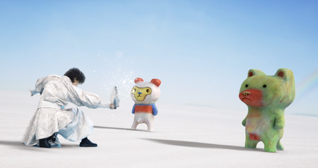 上:田島享央己によるあちゃらかな表情の彫刻作品が登場するシーン。