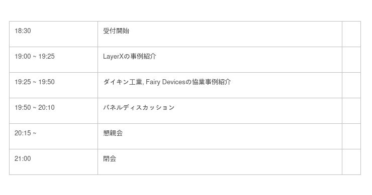 LayerXの事例、オープンイノベーション大賞を受賞したダイキン工業とFairy Devicesの事例について当事者から紹介しながら、大企業とスタートアップの取り組みにおける開発組織の良い点・課題・などに議論します。