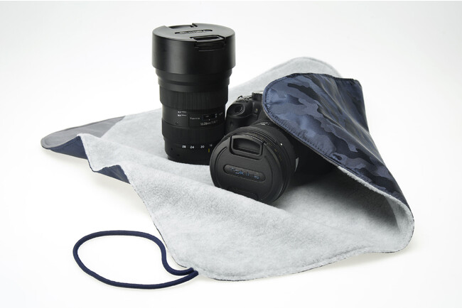 カメラやレンズ、タブレット、双眼鏡などを包んでゴム留めするだけで、機材をキズや汚れから保護、そのままカバンなどに入れても安心です。太めのゴムを使用しており簡単にしっかり固定できます。