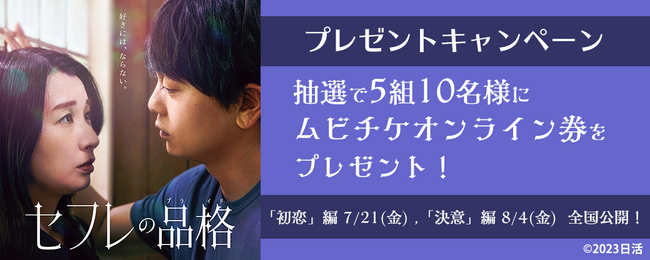 紙コミック・電子コミック累計430万部を突破したレディコミの大ヒット作が映画化!行平あい佳さん、青柳翔さんがW主演をつとめる映画『セフレの品格 初恋』が7月21日(金)より全国公開されます。本作品の公開を記念して、原作コミック「セフレの品格-プライド-」の1〜5巻を『まんが王国』でご購入いただいた方の中から、抽選で5組10名様にムビチケオンライン券をプレゼントいたします。詳細はキャンペーン特設ページをご確認ください。※本作品は15歳未満の方はご鑑賞いただけません。