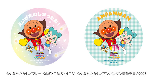 映画『それいけ!アンパンマン ロボリィとぽかぽかプレゼント』の鑑賞済みチケット半券を対象店舗のスタッフに提示すると、ナムコオリジナルシールをプレゼントします。メッセージver.と英字ver.の2種類から選ぶことができ、映画を観た記念になるデザインです。
