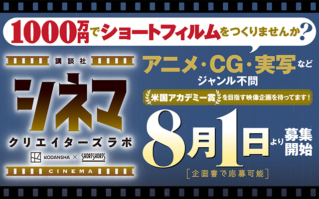 1000万円の資金を講談社が提供、世界中の映像クリエイターが担当編集者と一緒にショートフィルムを制作して国内外の映画祭での受賞を目指す「講談社シネマクリエイターズラボ」映像企画コンテスト。