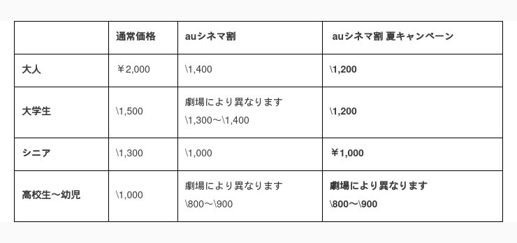 【auスマートパスプレミアム会員限定】auシネマ割 夏キャンペーン 7月14日スタート!期間中1,200円で映画が見れる!