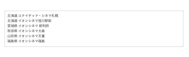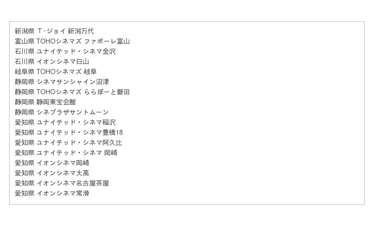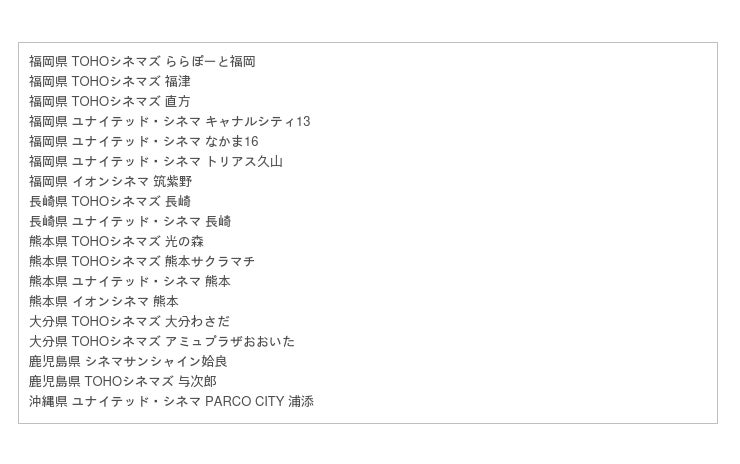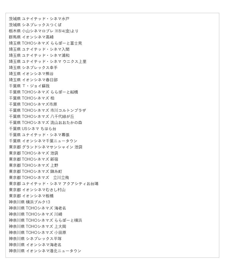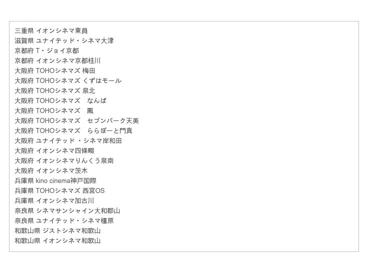詳しい営業状況は各劇場の公式サイト等にてご確認ください。