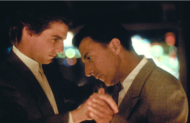 中古車ディーラーのチャーリーは、車が大好きだが商売は上手くいっていない。資金難で困っていたところへ父親の訃報が届く。少年時代にケンカをして家を出て以来、父親との絆はとぎれていた。帰省した彼は、遺言により遺産300万ドルが謎の人物に譲られると知って愕然とする。その人物とは一体誰なのかを突き止めるために管財人を訪ねたチャーリーは、存在すら知らなかった自閉症の兄レイモンドと出会う。