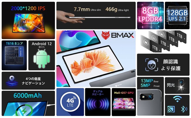 2K 大画面 8コアCPU搭載 8GB+128GB 高性能Android 12 タブレット !
