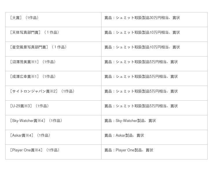 ※1:天体写真家、沼澤茂美先生、成澤広幸先生が選出する特別賞