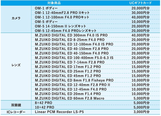 【内容】対象商品を期間中にご購入後、ユーザー・製品登録をしていただき、キャンペーンに応募された方を対象に、UC ギフトカードにてキャッシュバックいたします。※購入製品に応じて UCギフトカードの金額が異なります。