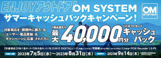 『ENJOYアウトドア!OM SYSTEMサマーキャッシュバックキャンペーン!』実施のお知らせ