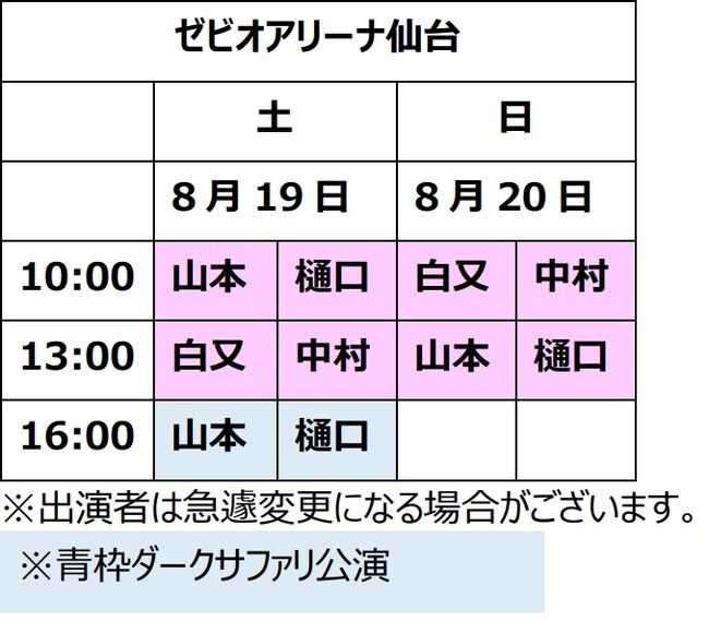 主 催:仙台放送、岩手めんこいテレビ、ぴあ(株)、ニイタカプラス