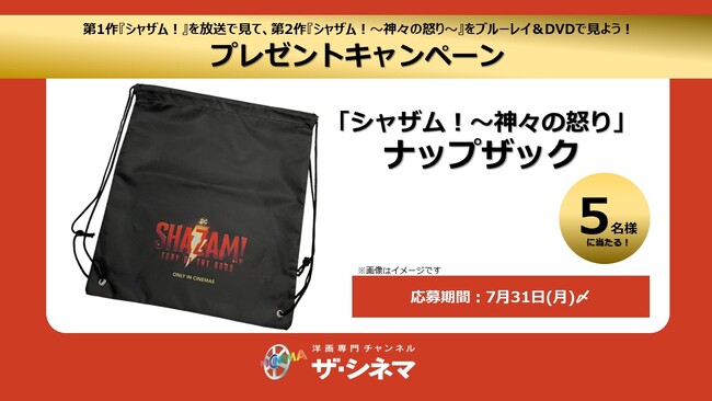 洋画専門チャンネルザ・シネマ(AXN株式会社、本社:東京都渋谷区、代表取締役社長 大園天樹)では、7月19日(水)にブルーレイ&DVDがリリースされるシリーズ第2作『シャザム!〜神々の怒り〜』と併せて、シリーズ第1作『シャザム!』を 字幕版、吹き替え版、そして2021年11月にザ・シネマが制作・放送し多くの再放送リクエストをいただいていたザ・シネマ新録版を含めた3タイプを7月22日(土)から順次放送いたします。これを記念して『シャザム!〜神々の怒り〜』グッズが抽選で当たるプレゼントキャンペーンを実施いたします。
