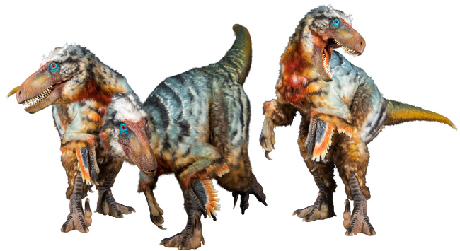白亜紀前期に活躍した、足が速く、優れた視力と高い知能を持っていたとされる肉食恐竜。属名は「ユタ州の泥棒」という意味で、大きな鉤爪がついた後ろ足と、疾走する際に体のバランスを保つために役立ったと考えられる長く丈夫な尾、捕まえた獲物を噛み千切る鋭い歯が特徴。