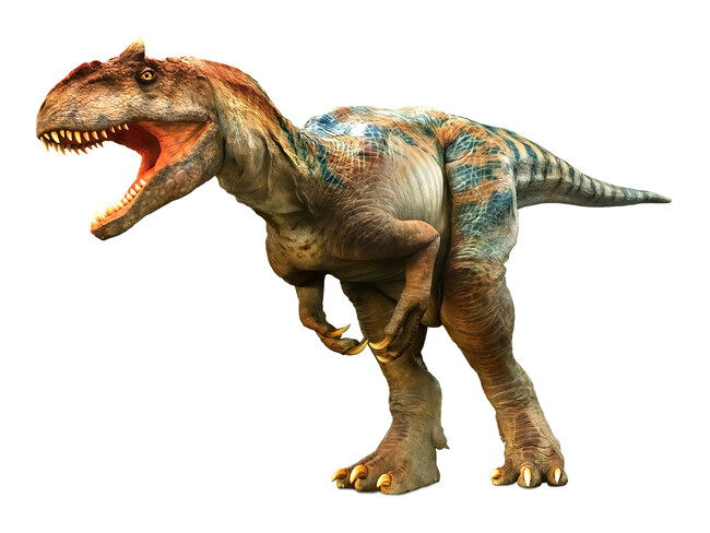 同時代に北米大陸に君臨していた大型肉食恐竜ティラノサウルスに比べ全体的に体が薄く顎の力も劣っていたが