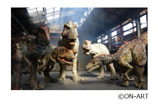 本公演に登場する恐竜はON-ART社が開発した“DINO-TECHNE”というリアル自立歩行恐竜型メカニカルスーツです。その卓越した造形技術は国内外で特許を取得、経済産業省関東経済産業局管内「第4回ものづくり日本大賞」優秀賞(2012年)、東京都ベンチャー技術大賞 特別賞(2009年)などを受賞するなど、高い評価を得ています。