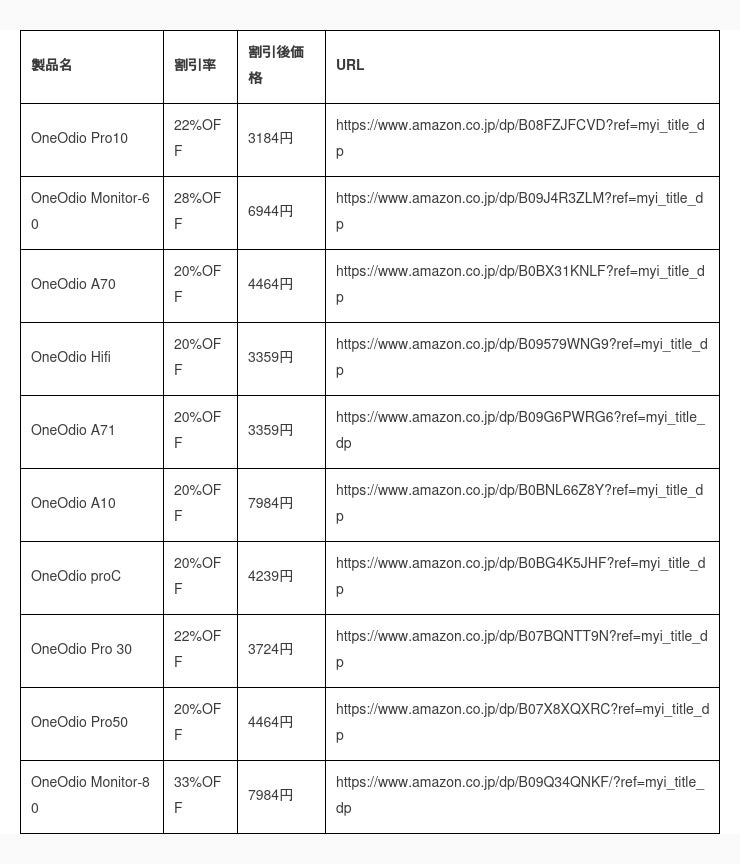 Amazon公式:https://www.amazon.co.jp/oneodio
