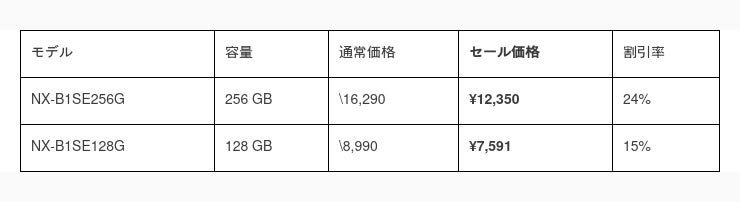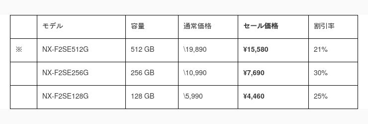 年に一度のビッグセールに際し、クラス最高レベルの転送速度を持つCFexpress Type BメモリーカードNX-B1PROシリーズが最大41%OFFをはじめ、V60に対応し静止画から4K動画まで対応可能なSDXC UHS-IIメモリーカードNX-F2SE256G(256GB)が過去最安値の¥7,690(30%OFF)など、これまでになくお求めやすい価格となっております。