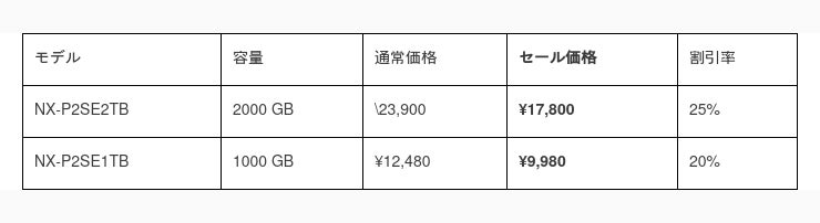 Amazon Nextorage 公式ストア セール対象商品ページ: