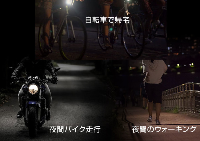 LEDの光を200m離れた遠方からでも確認できるので夜間のランニング、ジョギング、ウォーキング、サイクリング、通勤・通学の際の衝突など不慮の事故防止対策としておススメです。