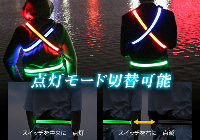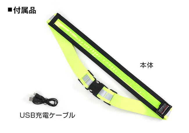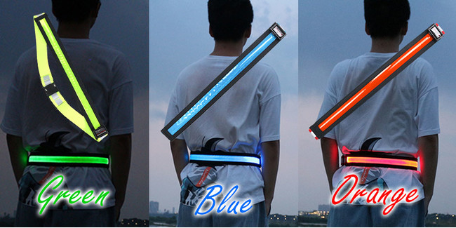 LEDライト部分は強い光で死角なく点灯し、2つのLEDライトで明るさ倍増!夜間でも安心です。 スイッチ操作で消灯⇔点灯⇔点滅と簡単にモード切替が可能です。 体を動かしたい!ランニング、ウォーキング、ペットの散歩、自転車・バイク通勤、夜釣り、アウトドアレジャーなど夜間の安全対策でどんなアイテムを揃えたらいいか、迷われている方に視認性を高めるには点滅モードがおススメです。 お色も選べる グリーン ブルー オレンジ の3色になります。 USB充電式なので、電池交換不要でとても経済的で視認性の高いLEDベルト「LED NIGHT-MARKER」です。