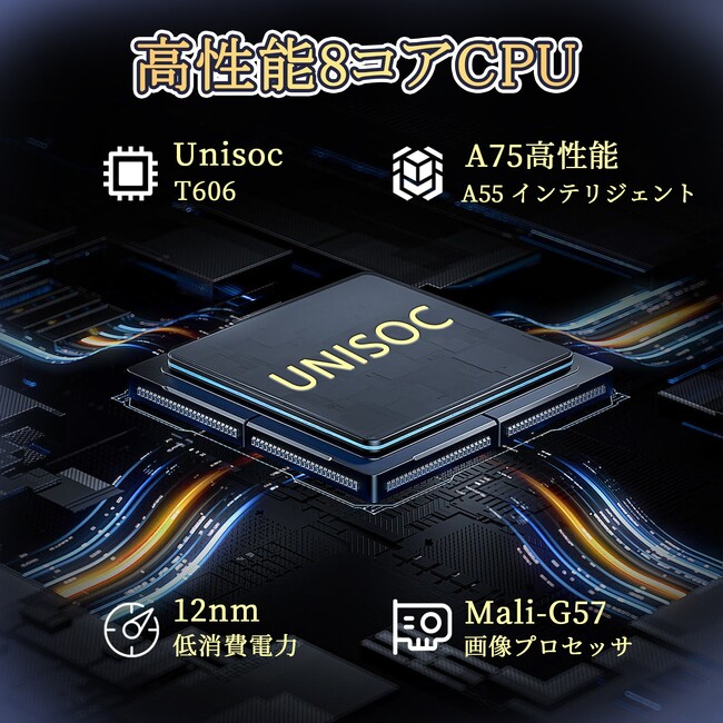 P40HDは新たに開発されたUnisoc製T606を搭載しています。前仕様の SC9863Aに比べ、 A55の代わりに2xA75を搭載し、P40HD Androidタブレットの全体的な使用体験をよりスム-ズかつ迅速に上げました。そのMali-G57マルチコアGPUはBifrostアーキテクチャベースであり、Vulkan、ES3.2などのグラフィックAPIをサポートし、モバイルゲームのビジュアルをさらに素晴らしい効果でレンダリングします。
