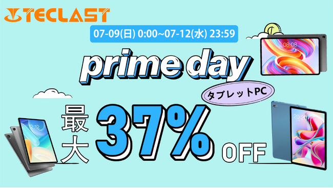 TECLAST は2023年7月9日(日)0:00から7月12日(水)23:59までの4日間開催されるAmazonプライムデーおよびプライムデー先行セールに参加いたします。期間中は人気のタブレット端末 [T50 2023]、[T40 Pro]、[P40HD シリーズ]が大幅割引にて多数登場いたします。