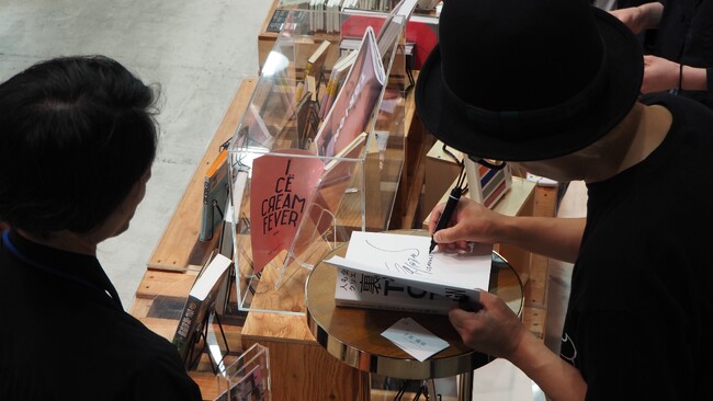 『クリエイティブの裏技。』は、千原監督が代表をつとめるデザインオフィス「れもんらいふ」初の作品集。シブヤ・トーキョーカルチャーを牽引する“アートディレクター 千原徹也”のアートワークとデザインロジックを一挙に公開する、集大成といえる一冊となっている。一日店長イベントが行なわれたのは、同書の発売初日。今回のイベントは、世界最速の著書サイン会ともなった。