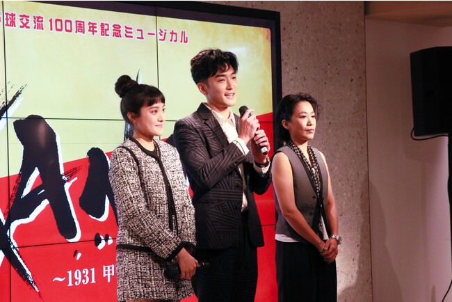 林 明訓役 鍾政均(ショウセイキン)さんは、「KANOの物語は台湾でも日本でも人気なので、ミュージカルへの出演は、緊張しているけど嬉しく思っています。」と笑顔で話し、サンミ 役 江明娟(エリック・チャン)さんは、「原住民の自分の土地に対する深い思いと伝統文化を守ろうとする気持ちが込められていて、舞台で描かれているサンミに感動しました」と自身が演じる役への思いを話しました。