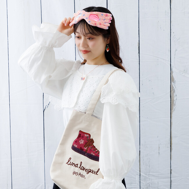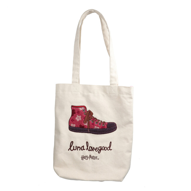 ふんわりとした手触りの立体的な相良刺しゅうでルーナ・ラブグッドの靴をデザインしたトートバッグ。A4サイズもしっかり収納できる、丈夫で使いやすいトートバッグです。