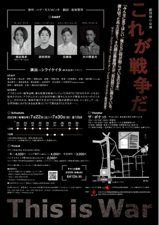 株式会社劇団俳小(東京都小平市、代表:斎藤 真)主催、『これが戦争だ』が7月22日 (土) 〜2023年7月30日 (日) にザ・ポケット(東京都中野区中野3-22-8)にて上演されます。 チケットはカンフェティ(運営:ロングランプランニング株式会社、東京都新宿区、代表取締役:榑松 大剛)にて発売中です。