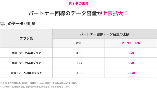 ■第2弾:既存3プランにおけるパートナー回線データ容量の増加