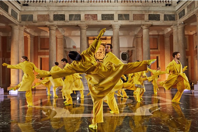 2004年に初めて開催された「ニューイヤーコンサート・イン・ヴェネツィア」は、瞬く間に世界的な人気を博しました。フェニーチェ管弦楽団と合唱団、そしてゲストシンガーによる生演奏、市内の要所で事前に録画されたダンスパフォーマンスが交互に発表されます。マックスマーラのクリエイティブ・ディレクター、イアン・グリフィスは、演劇、アート、ファッションなどの異業種との交流を通じて、イタリアのダンスを世界に広めようと、イタリアで唯一の100%政府出資による芸術作品「Fondazione Nazionale della Danza / Aterballetto」の振付を手がけるディエゴ・トルテッリと提携しました。二者の協力により生まれたマックスマーラの衣装は、イエロー、レッド、エレクトリックブルー、グリーンのあざやかなカラーを使ったものです。演劇に必要な緊張感を生み出し、ピュアで特別なカラーによって、バレエに命が吹き込まれる場所、チーニ財団とパラッツォ・グラッシにまつわる感情が呼び起こされます。