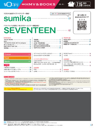 『月刊ローチケ』の表紙には、10月から全国ライブハウスツアーを開催する「sumika」。そして『月刊HMV&BOOKS』の表紙には、過去のコンサート映像6作品の追加発売と、1年ぶりのドームツアーの開催が決定した「SEVENTEEN」が登場!