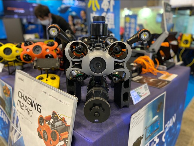 今回の展示のメインは、6月に発売されたばかりの水中ドローンメーカー大手・CHASING社の『CHASING M2S』。コンパクトなボディながら、水中で安定した操縦性能を誇り、またコストパフォーマンスに優れた人気機種です。ブースでは大型水槽を用意し、来訪者に操縦を体験いただく予定です。