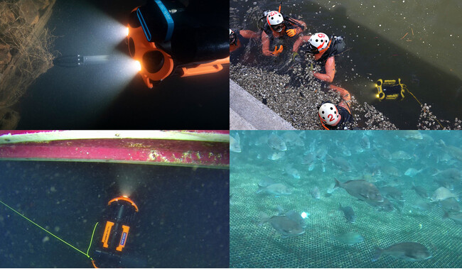 水中ドローンは、単に水の中を見るためのホビー用品から、ここ数年で飛躍的な技術的進化を遂げ、最近ではダムやプラントの点検や定置網の点検、近年多発する災害や水難事故の際の捜索など、さまざまな用途に使われ始めています。
