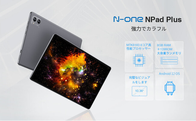 タブレット 10.4インチ wi-fiモデル Andorid 12 タブレット PC N-one NPad Plus MTK 8183 8コアCPU 2.0GHz 8GB+128GB+1TB拡張可能 10インチ 2K FHD IPSディスプレイ 2000x1200解像度 13MP/5MP + Bluetooth 5.0+GPS+2.4G/5G WiFi+OTG+6600mha+GMS 日本語取扱説明書付き