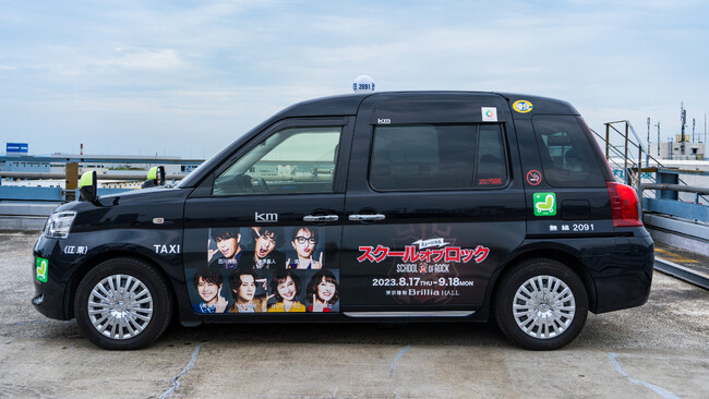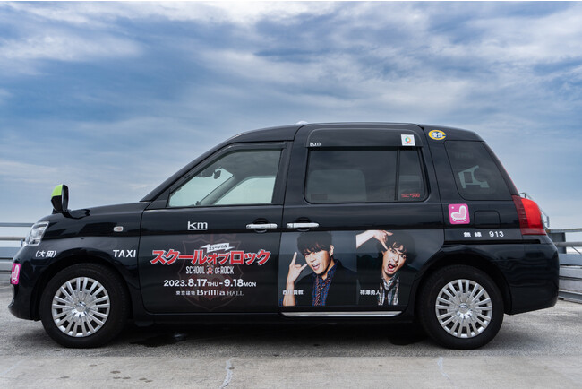 車体全体をミュージカル「スクールオブロック」仕様に装飾した特別なタクシー『ミュージカルスクールオブロックタクシー』限定11台が、7月17日(月)より東京23区限定で走行を開始しました。