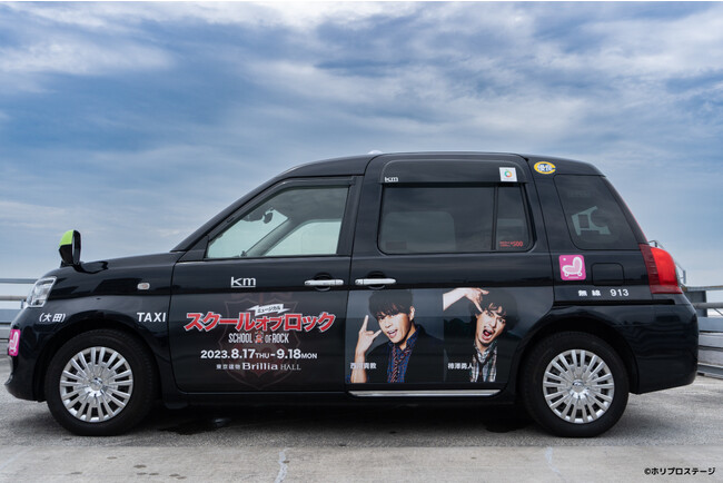 また、公演の開幕を記念し、8月1日(火)からは期間限定でキャストのデザインを施したラッピングタクシーをS.RIDEアプリから配車することができる。さらに車内では、タクシーサイネージメディア「GROWTH」を活用し公演の宣伝映像の放映を開始するほか、「S.RIDE」アプリから配車して乗車された方には特別乗車記念品のステッカーも数量限定で配布する。開幕を目前にラッピングタクシーが走行することで、街全体を“ミュージカル『スクールオブロック』”の世界へご案内!