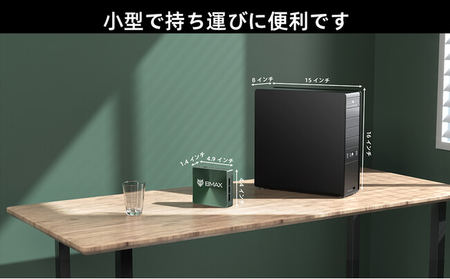 より省スペース: B6 Pro(300g) 幅12.5cm×長さ11.2cm×高さ3.5cmのコンパクトサイズで、置き場所を選ばず、 付属のVESAをモニターに取り付けて簡単に設置できます。 デスクトップパソコンと比べて、MINI PCフットプリントが小さいため、デスクトップがより整頓されます。