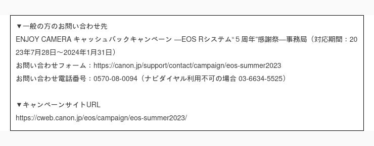 ENJOY CAMERA キャッシュバックキャンペーン ―EOS Rシステム“5周年”感謝祭―
