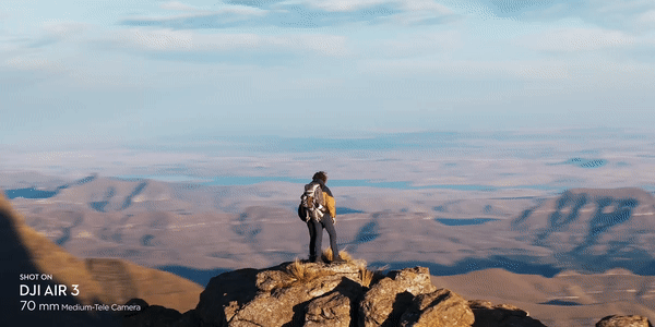 Air 3のカメラは両方とも2.7K映像の縦向き撮影に対応し、風景撮影でも人物撮影でも、躍動感あふれる縦向き映像を撮影できます。横縦比4:3のCMOSセンサーで撮影された映像から直接切り出された2.7K縦向き映像は、スマートフォン向けに最適化され、SNSですぐに共有でき、後編集でクロップする必要はありません。