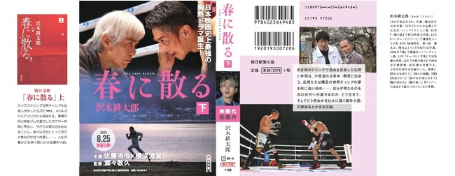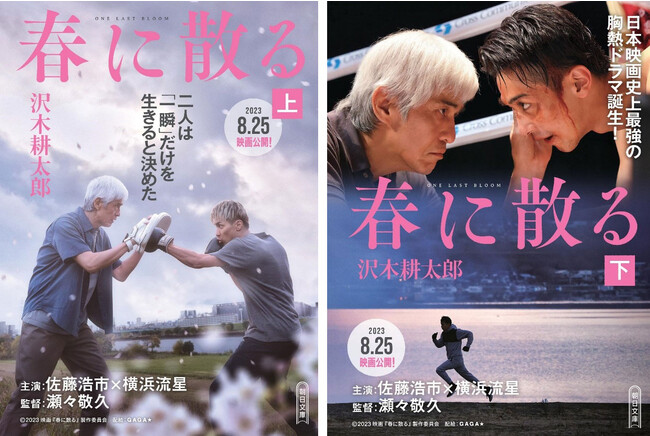 沢木耕太郎の傑作小説『春に散る』(上下巻/朝日文庫/2020年2月刊)が、主演に佐藤浩市さん、横浜流星さんを迎え、映画化。2023年8月25日(金)から全国で公開されます! 映画化を記念して、映画スチールを多数使用した全面幅広帯付き版を作成。全国書店にて展開が開始されました。 “胸熱”なスチール写真で彩られた2冊を、ぜひ、書店でお確かめください。
