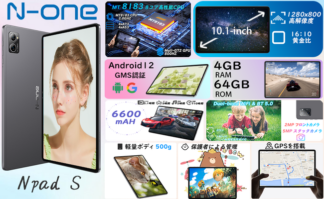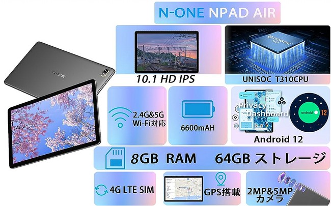 Android 12 10.1インチ タブレット wi-fiモデル、 N-one NPad Air タブレット,HD IPSディスプレイ、T310 CPU最大2.0GHz、1TB TF拡張可能+ 8GB(4+4拡張)RAM+64GB ROM、GMS認証+6600mAh大容量バッテリー+Type C充電+2.4G/5G Wi-Fi対応、4G LTE SIM通話 タブレット10.1インチ、Bluetooth5.0+GPS+2MP/5MPカメラ、日本語取扱説明書付き