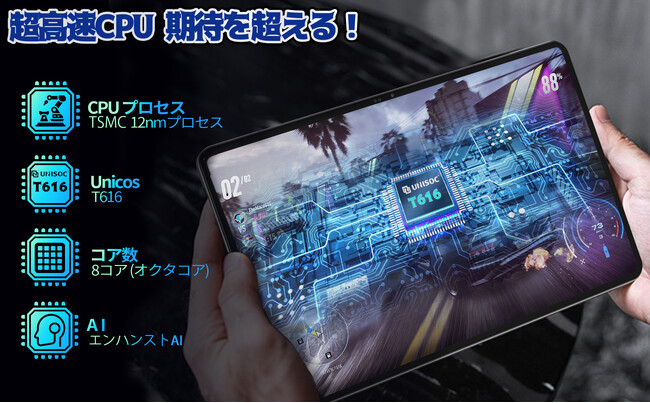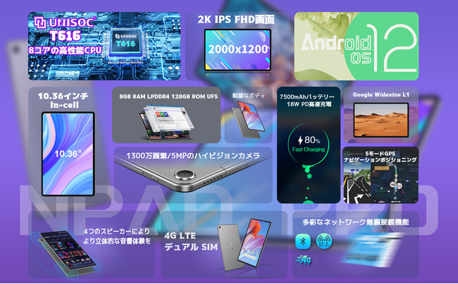 NPAD PROはUNISOC T616という高性能な8コアCPUを搭載しており、数々の高性能アプリケーションをスムーズに実行することが可能です。このタブレットの高速かつスムーズな処理能力により、生産性や娯楽体験を大幅に向上させます。移動中のオフィスや娯楽センターとして活用することができ、驚くべき高性能を提供します。さらに、あなたの生活を便利で効率的かつ多彩にするでしょう。
