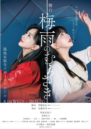 平松可奈子主演、共演者に水原ゆき、新田恵海、川村陽介、吉田知央、佑太、楓、山根理輝ら豪華キャスト出演の舞台「梅雨のむらさき」 SNSで好評のメインビジュアル、ポスターが公開。