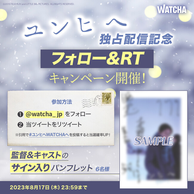 また、独占配信を記念してWATCHA公式Twitterにて監督と出演者のサイン入りプレゼントキャンペーンを実施いたします。