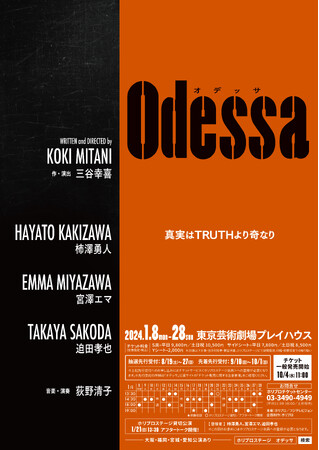 2024年1月に東京・東京芸術劇場プレイハウスにて上演される、三谷幸喜作・演出の新作書き下ろし舞台『オデッサ』東京公演スケジュール、チケット販売情報などが解禁。チケットの最速抽選先行は8月19日(土)より開始。